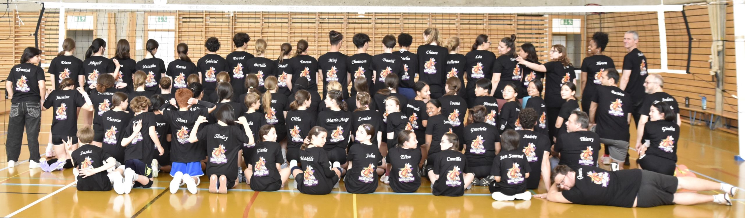 Les clubs organisateurs, le VBC PEPS et le VBC Etoile-Genève, espèrent que vous avez eu du plaisir à participer et que vous reviendrez pour notre prochain Stage – qui devrait normalement se dérouler durant la semaine des vacances scolaires d’automne, soit du 19 au 23 octobre 2026. Et bien entendu, pour terminer, quelques images du dernier jour – y compris la traditionnelle photo de groupe !